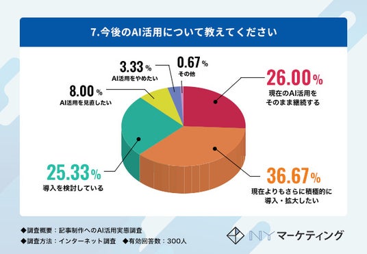 NYマーケティング株式会社(本社所在地:愛知県名古屋市中村区、代表取締役:中川 裕貴)は、集客のためにWeb記事制作を行っている全国の男女300名を対象に、記事制作へのAI活用実態調査を実施しました。