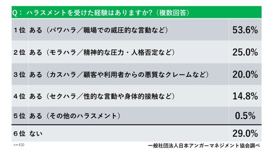 【分析4.】7割がハラスメント被害を経験――パワハラ53%、カスハラは5人に1人