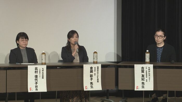 シンポジウムでは、九州大学病院の看護師長や九州がんセンターと福岡こども病院の医師も出席し、難病と闘う子供達の治療の状況について説明した。