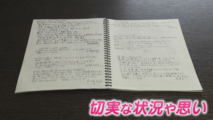 『シバタハウス』の部屋に置かれたノートをめくると、重い病気の子供を抱えた親達の苦しい状況や切実な思いが綴られている。