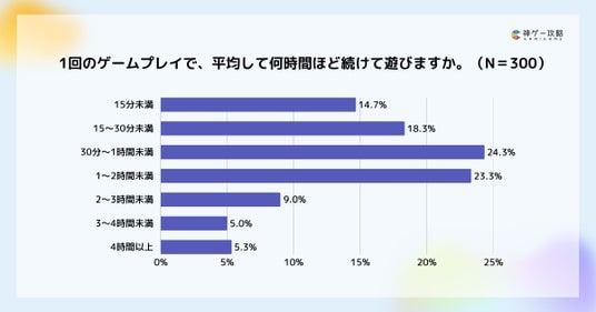 1回のゲームプレイで続けて遊ぶ時間は、30分~1時間が24.3%で最多となりました。