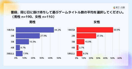 同日に掛け持ちして遊ぶゲームタイトルの数は男女ともに1本が最多