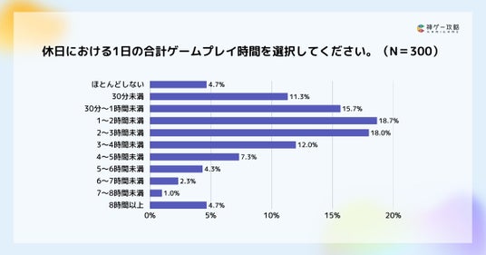 ・休日の1日あたりのプレイ時間は「1~2時間未満」が最多で18.7%
