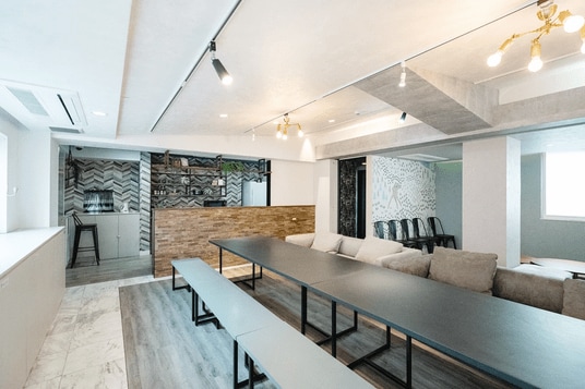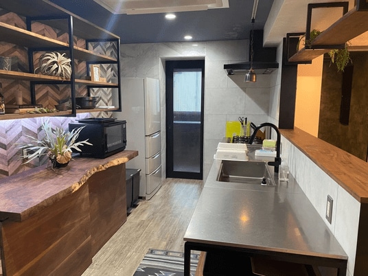 特徴:オリジナル製造のカウンターキッチンを備えたイベントに人気のレンタルスペース