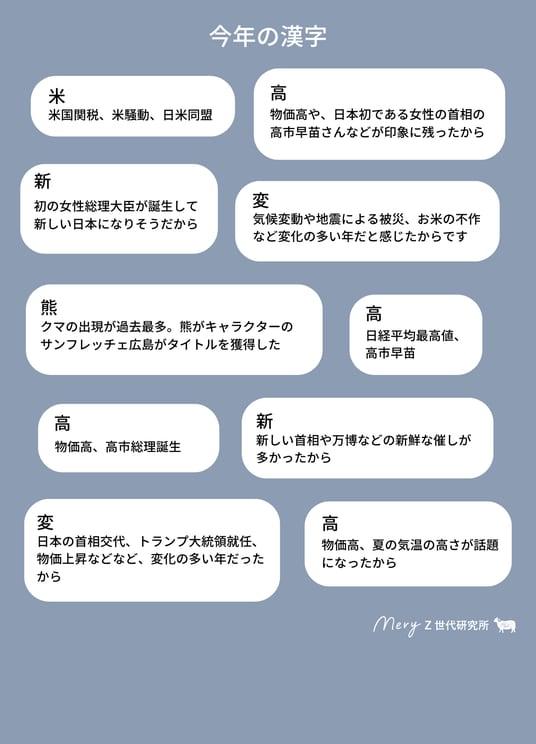 ■Z世代が選ぶ今年の漢字は、高市早苗氏の内閣総理大臣就任/物価高で「高」が1位に!
