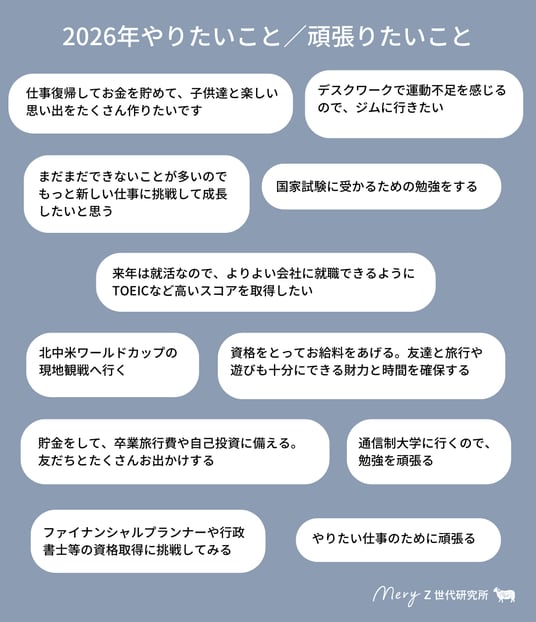■Z世代の2026年やりたいこと/頑張りたいことランキングの1位は「学業・勉強など学習系」。