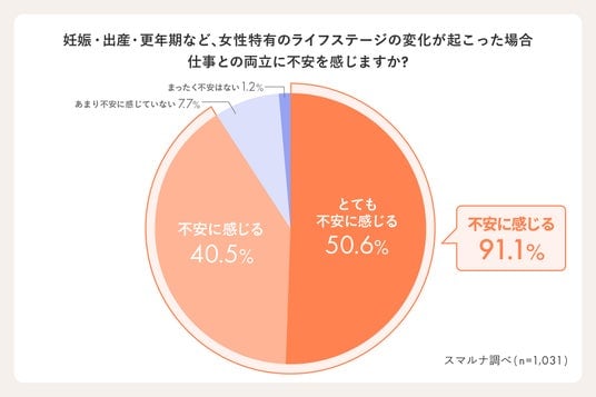- - 妊娠・出産・更年期などライフステージの変化と仕事の両立にも、9割以上が不安を抱えている