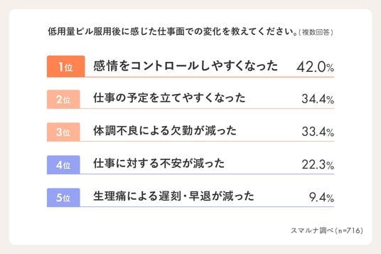 - - 低用量ピルを服用することで「働きやすくなった」と実感している人は約8割