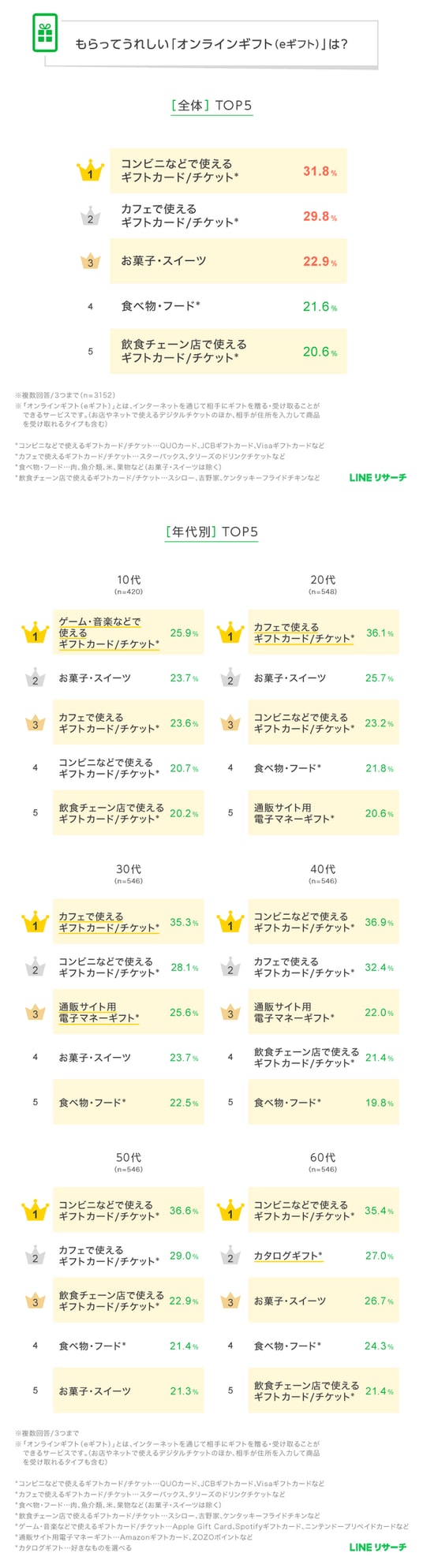 LINEリサーチ、全国の15~69歳の男女を対象に、オンラインギフト(eギフト)に関する調査を実施