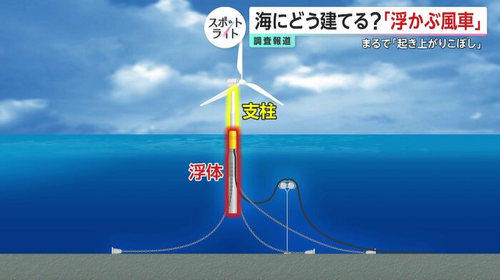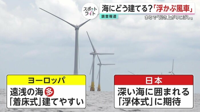 ヨーロッパでは遠浅の海が多く、「着床式」の風車を建てやすい一方、日本は深い海に囲まれているため、「浮体式」に期待が集まっている。