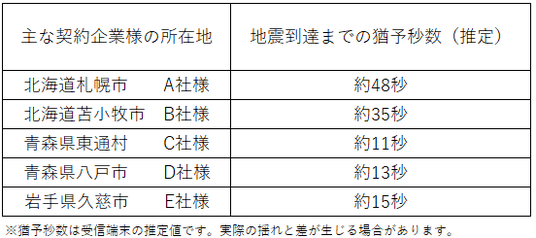 震源地に近い企業様の猶予秒数は短いですが、震源地から遠くなるにつれて猶予秒数は長くなっ
