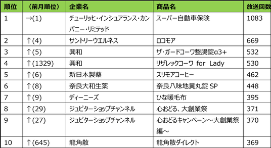2025年11月度 エリア別テレビCM放送回数ランキング(名古屋)