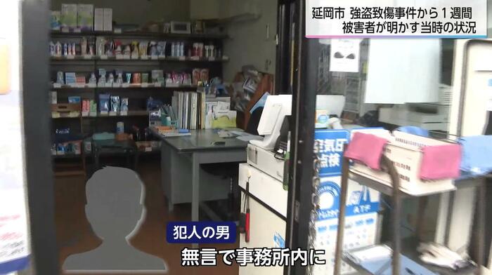犯人は無言のまま事務所内に入ってきたといい、男性が「何ですか」と聞くと、犯人は「お金をください」とだけ言ったという。男性は犯人が「後ろではなく真横にいた」と述べ、自身は下を向いてお金を数えていたため、「一瞬の出来事だった」と話した。