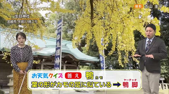 テレビ宮崎の夕方ニュース「#Link」でお天気コーナーを担当している気象予報士・古山圭子さんが天気の豆知識を解説するコーナー。今回は、秋の風物詩「イチョウ」に隠された、意外な豆知識と注意点についてです。
