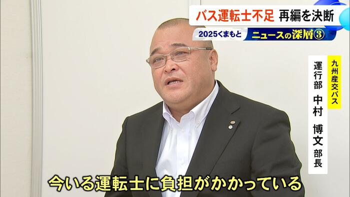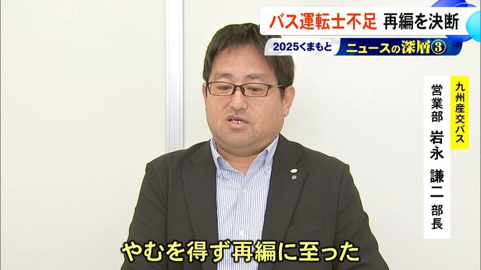 九州産交バスは2025年9月に宇城市にある松橋営業所を廃止し、10月に松橋・宇土エリアから熊本市内までの直通路線も廃止するという再編を行った。九州産交バス・営業部の岩永謙二部長は「運転士不足の問題が一番と思っている。やむを得ず再編に至った」と話す。
