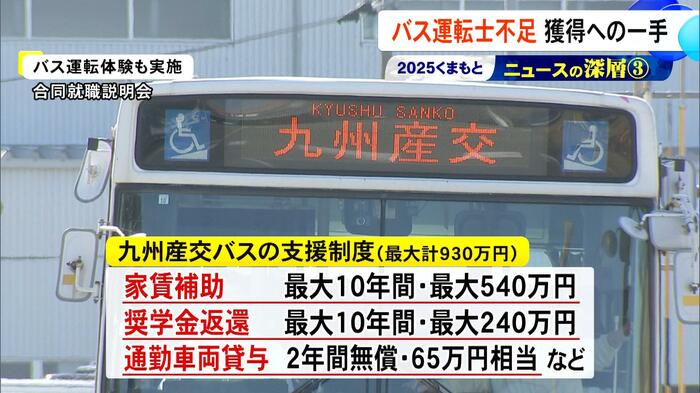 九州産交バス・運行部の中村博文部長は「運転士が足りていない。今いる運転士に負担がかかっている」と話す。こうした状況はどの事業者も同じで、県内のバス5社では現在計50人の運転士が不足している。