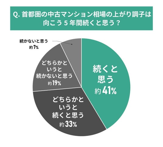首都圏では中古マンション相場の上昇傾向が続いています。この流れが今後5年間継続するかどうかについて、回答者の意見を調査しました。