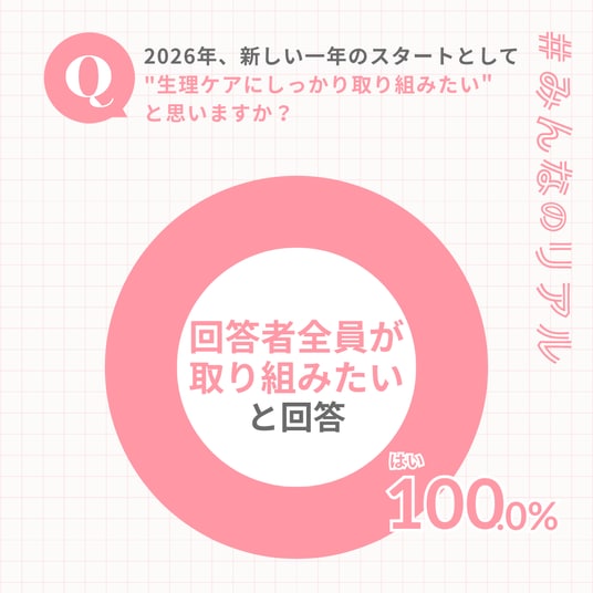 すべての回答者が「はい」と答え、2026年に向けて生理ケアを見直したいと考える人が多いことがうかがえました。冬の不調や生理痛のつらさを実感する時期であることが、ケア意識の高まりに影響している可能性があります。新しい一年に向けて、コンディションを整えたいと感じる人が増えていることが示唆されます。