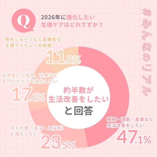 また、新しい一年を前に生理ケアへ前向きに取り組みたいと考える人が多く、セルフケアや温活、医療的ケアなど、各自に合った方法を選びたいという意識も高まっています。