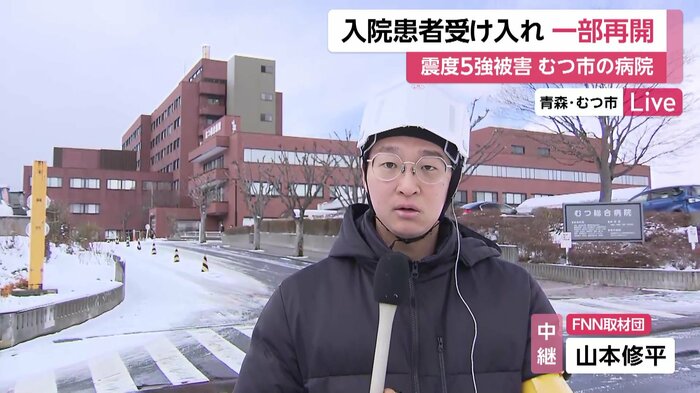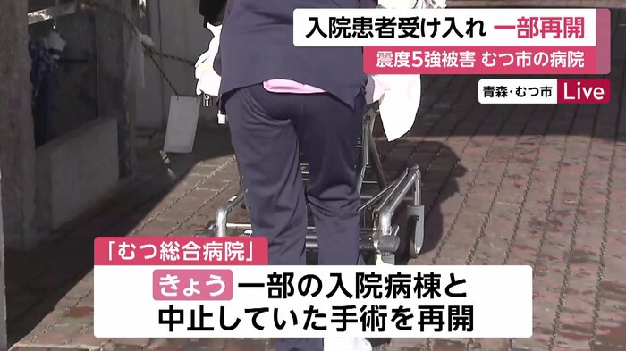 地震の影響で閉鎖していた、青森県むつ市にある総合病院では、12日から入院病棟の一部が再開する。