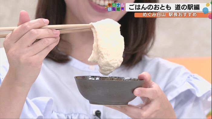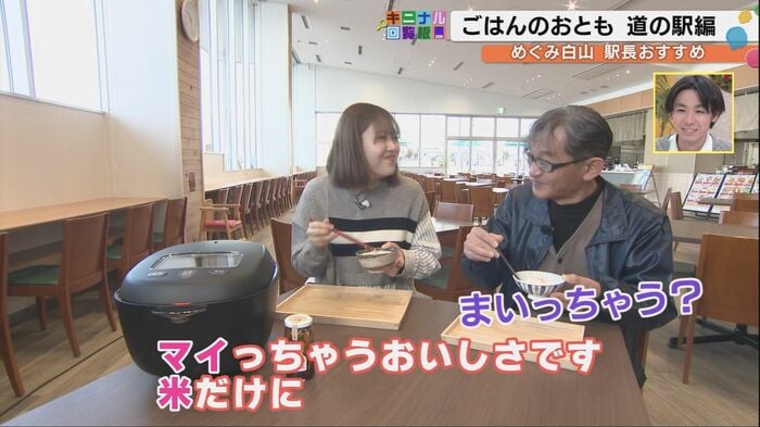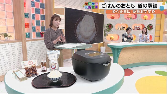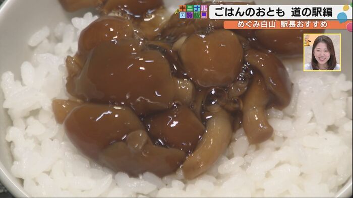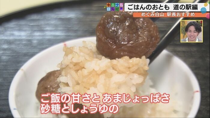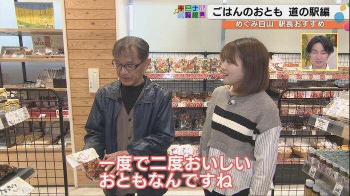 次に訪れたのは「道の駅めぐみ白山」。ここでは駅長の嵐俊之さんが自らいろんな商品を試食した中から、ご飯のお供3選を紹介してくれた。