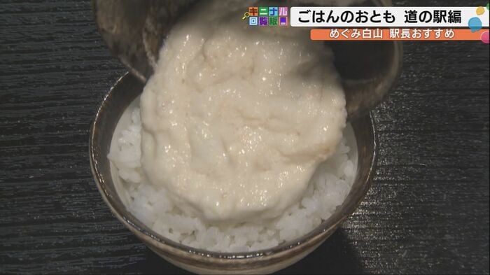 第1位は「白山丸いも」のすりおろし。「非常に粘り気が強くミネラル豊富でご飯のお供にぴったり」と駅長は太鼓判を押した。すりおろした丸いもにお好みで出汁を加え、熱々のご飯にとろろをのせるシンプルな食べ方だ。