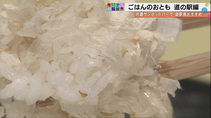 「この甘辛さと程よいとろみこれが抜群ですね」と駅長。試食した沼本アナも「本当スルスルって入っていきますね。お米自体の粒立ちは邪魔しないので、相性が本当にいいですね」と述べた。