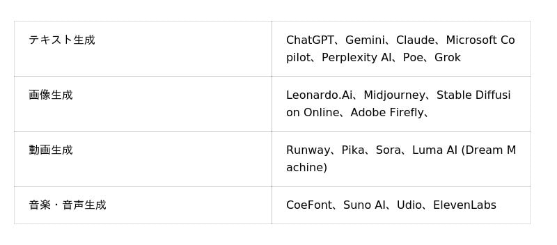 テキスト生成AIごとに利用のされ方、利用ユーザーが異なることが考えられます。