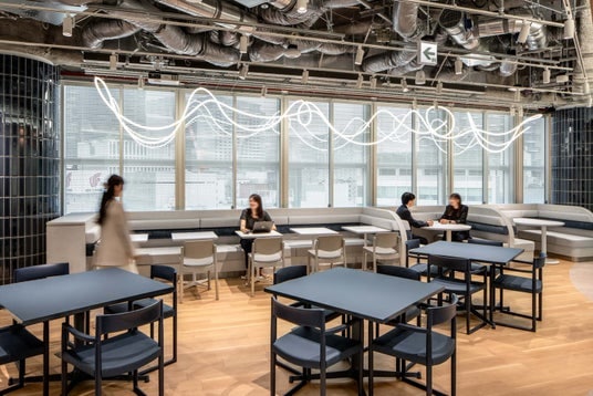 ワークプレイスに「居心地の良さ」をもたらすことを目指し、働く人が自ら考えて場を選び、集中や交流、学びが自然と行動の中から生まれる工夫とした。