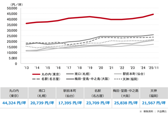 三幸エステート株式会社(本社:東京都中央区、取締役社長:福島正二郎)は、2025年11月度の東京都心5区(千代田区、中央区、港区、新宿区、渋谷区)および全国6大都市(東京、札幌、仙台、名古屋、大阪、福岡)の大規模ビル※1のマーケットデータをまとめた「オフィスマーケット2025年12月号」を公表します。