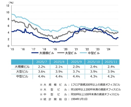 空室率 2ヵ月連続で小幅な上昇 優良な既存ビルで品薄感が強い状況