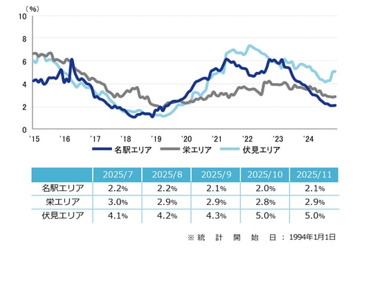 <名古屋市 全規模ビル 主要エリア 空室率>