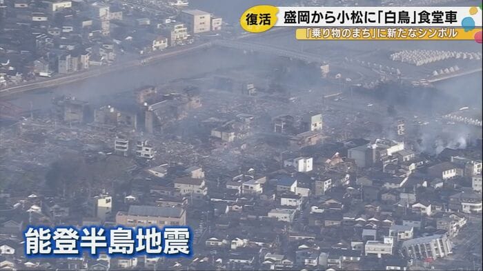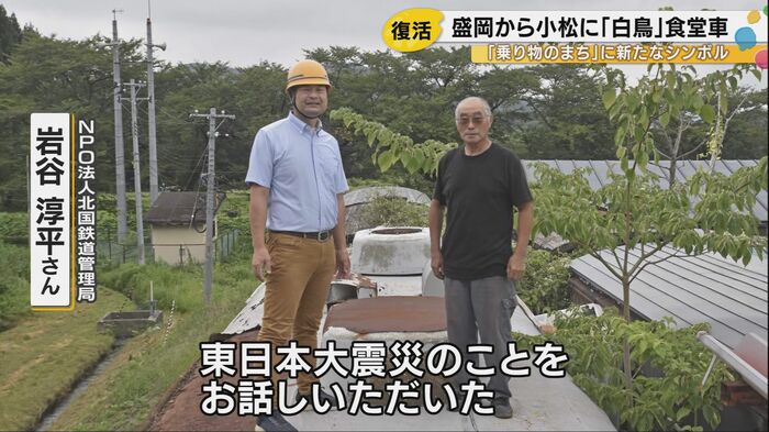 二つの被災地をつなぐ架け橋となった一両の食堂車。その新たな物語は、ここ小松からまた始まろうとしている。