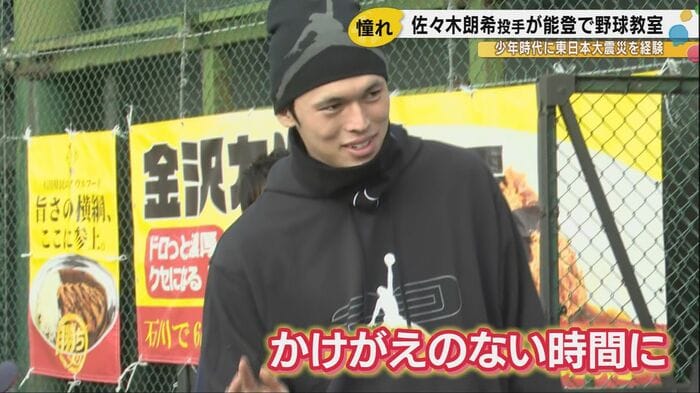 岩手県出身の佐々木投手は、小学3年生の時に東日本大震災を経験した。当時、プロ野球選手やOBが被災地で開催した野球教室は、幼い佐々木少年にとって忘れられない思い出となったと言う。その経験が、今回の能登での野球教室開催の原点になっている。
