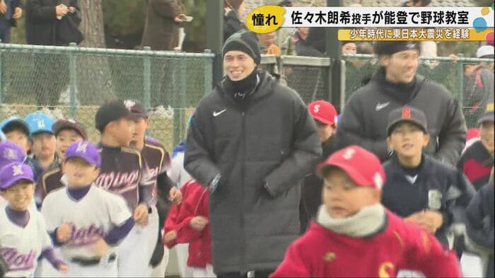 珠洲市蛸島町の球場に、子どもたちの歓声が響き渡った。ロサンゼルス・ドジャースの佐々木朗希投手が姿を現したのだ。今年、球団史上初となるワールドシリーズ2連覇に大きく貢献した佐々木投手は、この日、能登の子どもたちのために野球教室を開催した。