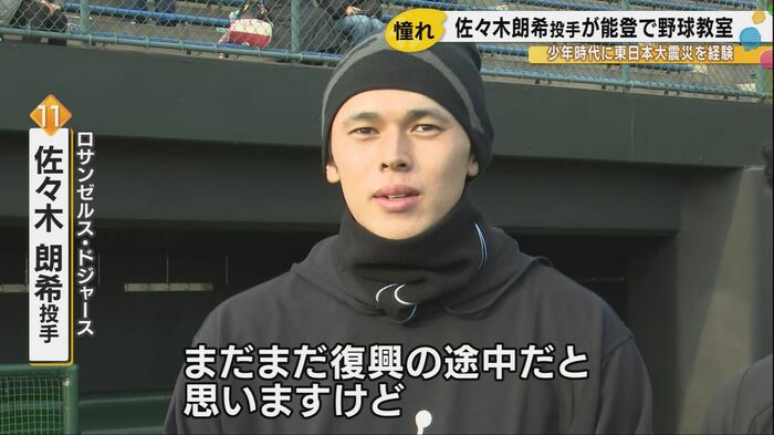 「まだまだ復興の途中だと思いますけど、僕らにできることを考えながら、皆さんと一緒に復興に向けて頑張っていけたらと思います」と佐々木投手は語る。自身が震災で受けた支援を、今度は能登の子どもたちに還元する形だ。