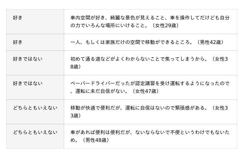 ☆車を運転することが好きな理由、好きではない理由(全4,803件)