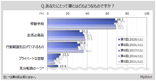 マイボイスコム株式会社(東京都千代田区、代表取締役社長:高井和久)は、7回目となる『カーライフ』に関するインターネット調査を2025年11月1日~7日に実施しました。