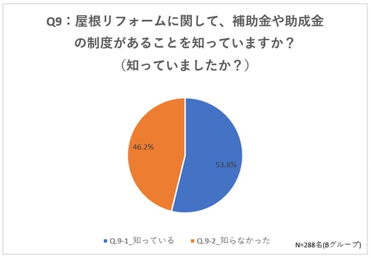 Q9:屋根リフォームに関して、補助金や助成金の制度があることを知っていますか?(知っていましたか?)(単一回答)