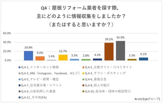 Q4:屋根リフォーム業者を探す際、主にどのように情報収集をしましたか?(またはすると思いますか?)(複数回答)