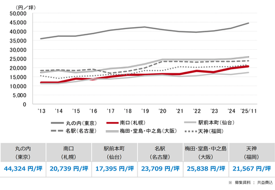 三幸エステート株式会社(本社:東京都中央区、取締役社長:福島正二郎)は、2025年11月度の札幌市オフィス賃貸状況(空室率&現空面積:全規模、募集賃料&募集面積:全規模、規模別空室率、主要エリア※1空室率:全規模)および全国6大都市(東京・札幌・仙台・名古屋・大阪・福岡)の大規模ビルのマーケットデータをまとめた「オフィスマーケット2025年12月号札幌」を公表します。