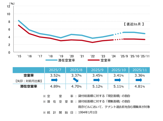 空室率 2ヵ月連続で小幅な低下 「北口」は1.2ポイントの大幅な上昇