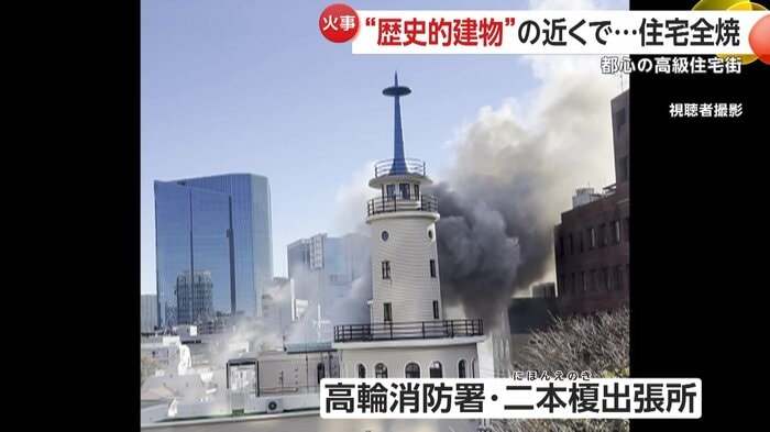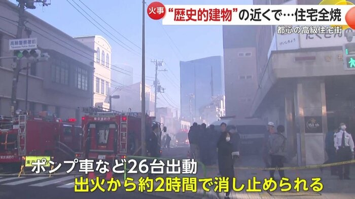 現場は「東京都選定歴史的建造物」に選ばれた高輪消防署・二本榎出張所に隣接する住宅で、ポンプ車など26台が出動し約2時間で、ほぼ消し止められた。
