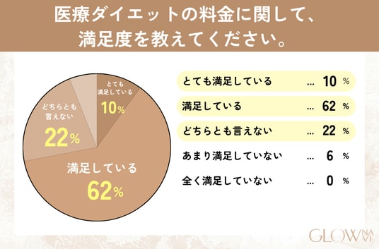 医療ダイエットにかかった費用について 、「とても満足」「満足」と答えた人が全体の72%でした。
