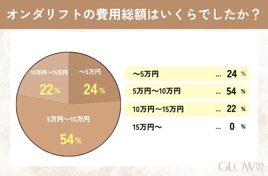 - 施術費用の総額が「5万円~10万円」と回答した人は54%で過半数を占めた。