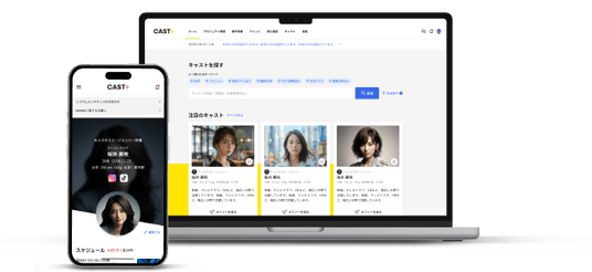 CAST+(キャスタス)についてキャストを起用する映像等のコンテンツ制作において、制作会社と芸能事務所が最適にマッチングするプラットフォームです。プロデューサー・俳優・マネージャーなど、第一線の現場の声をもとに開発し、2025年9月にリリースしました