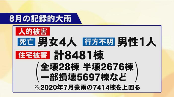 8月の記録的大雨では、熊本県内で男女4人が亡くなり、いまなお男性1人の行方が分かっていない。