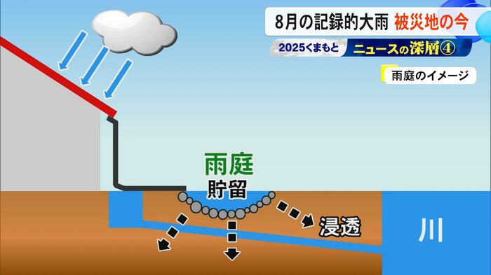 熊本市東区にある熊本県立大学内に造った『雨庭』では、降った雨の水路への流出をどの程度、抑えることができるかなどを観測。8月の大雨では、速報値で降った雨の流出をおよそ50%カットしたという。