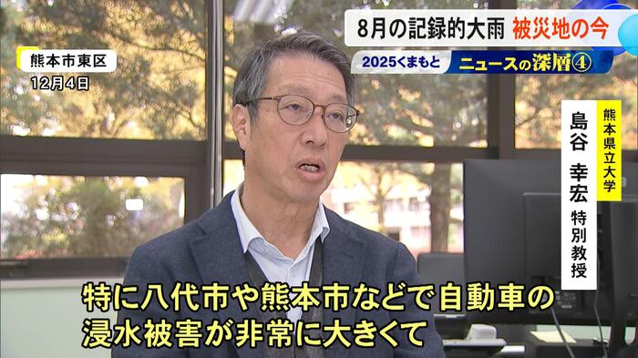 河川工学が専門の熊本県立大学の島谷幸宏特別教授は「特に八代市や熊本市などで、自動車の浸水被害が非常に大きくて、内水氾濫が、非常に市民生活に大きな影響を与えたのが、今回の水害の特徴」と話す。