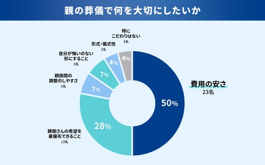 「親の葬儀で何を大切にしたいか」という問いに対し、半数がまず“費用”を最優先に考えていることがわかりました。